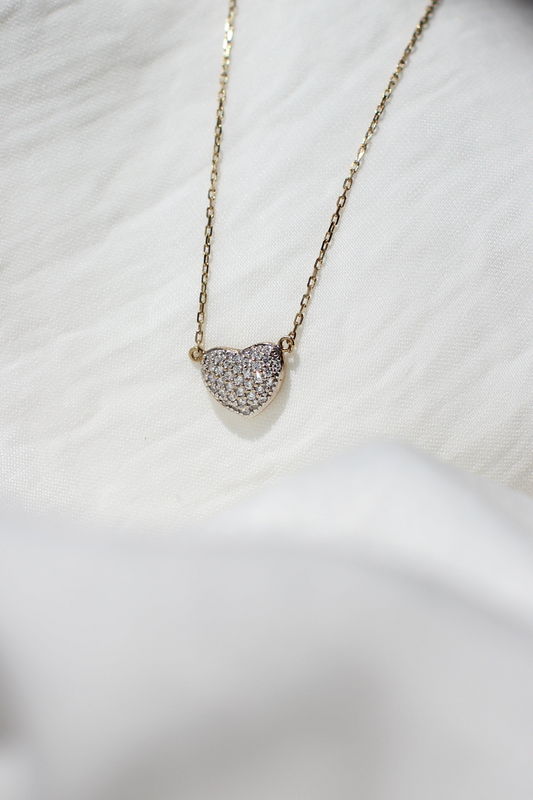 Delicate 9k Gold Necklace with Pavé Heart Pendant