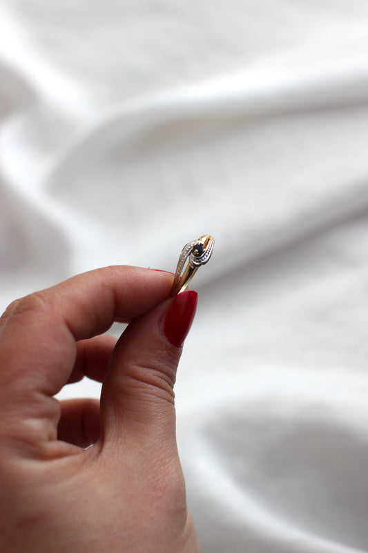 Vintage 1960s Tourbillon 18k Gold Ring with Central Sapphire