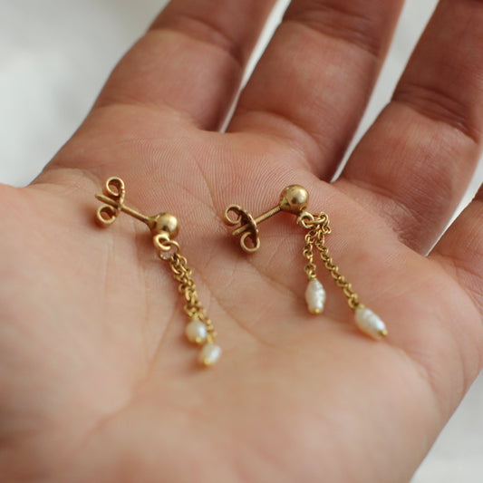 Stunning 1990s 18K Yellow Gold Earrings – delicate sky-blue crystal drops