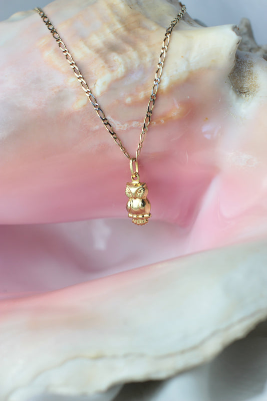 18k Gold Owl Pendant with Exquisite 90s Detailing