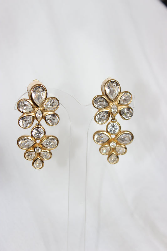 1980s Christian Dior Vintage Clip-On Earrings – Gold-Plated & Faceted Glass Stones