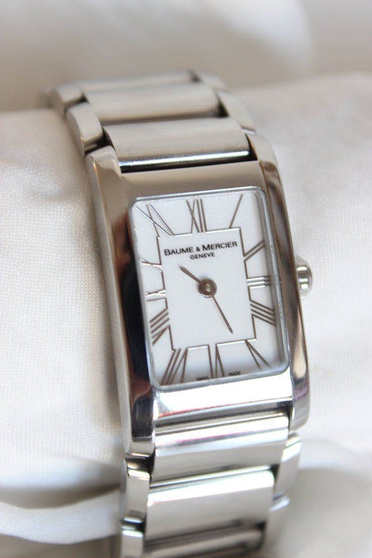 Baume & Mercier "Hampton" Watch – Steel Case with White Glitter Dial