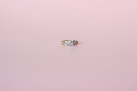 Vintage Intertwined Double Heart Chain-Link Ring in 9K Two-Tone Gold with Diamond
