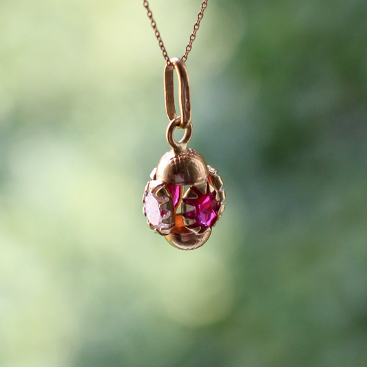 Vintage Rare 1960s 18k Gold Pendant with White and Raspberry Red Zircons