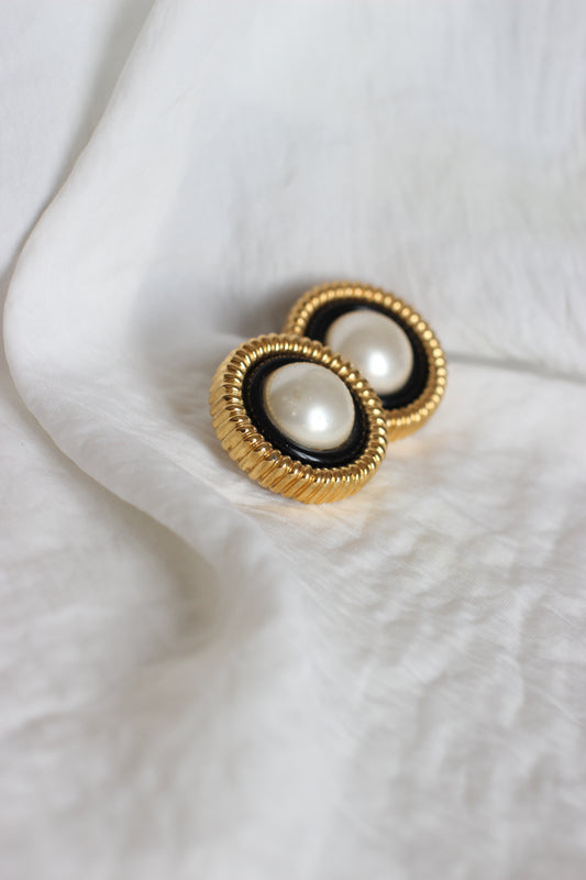 Vintage 1960s CHANEL Clip-On Earrings – Gold, Black & Faux Pearl