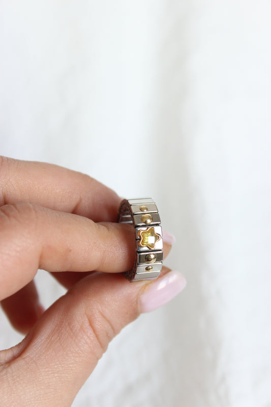 Unique Design Zoppini Italian Ring in 18k Gold & Steel with Star-Cut Citrine