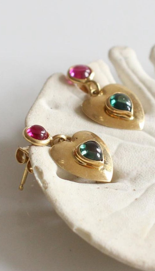 Custom 18k Gold Earrings with Heart-Shaped Cabochons