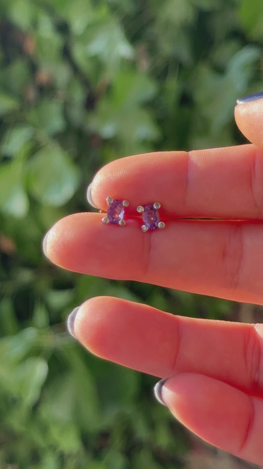 Vintage 18k Yellow Gold and Amethyst & Diamonds Earrings