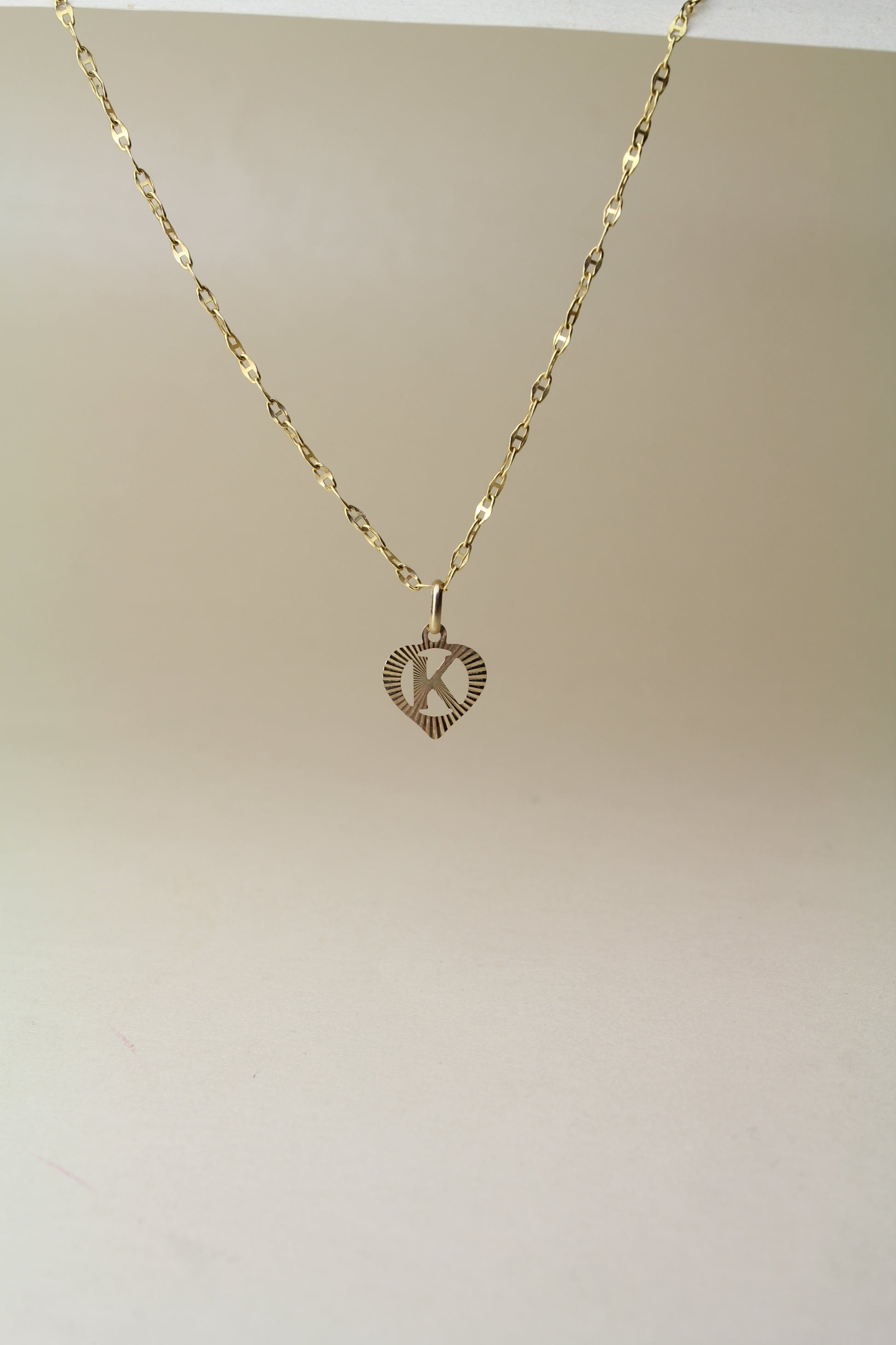 9k Yellow Gold Pendant – Letter "K" in a Heart – Reflective Finish