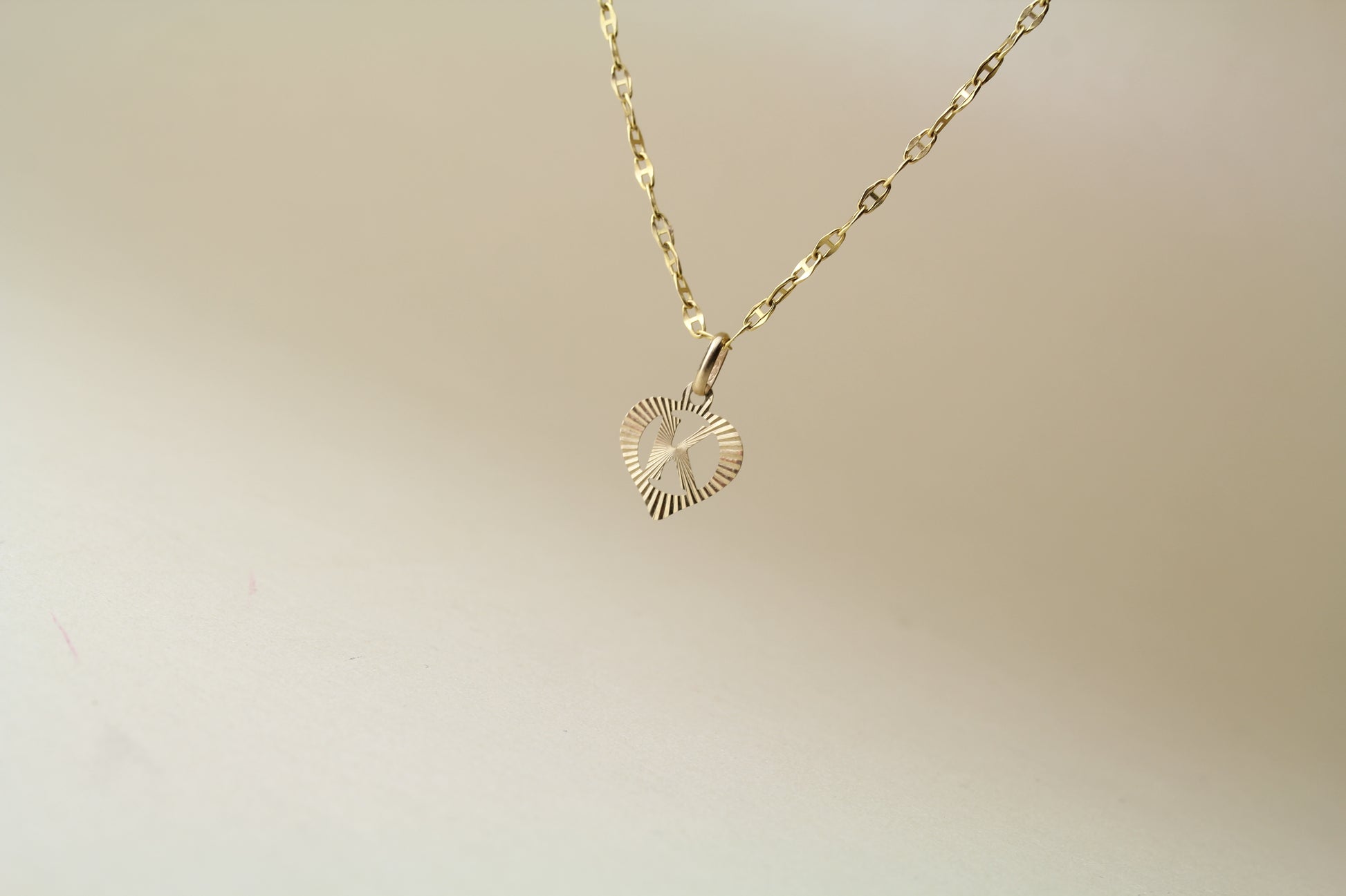This delicate vintage 9k yellow gold pendant features the letter "K" set within a polished heart, beautifully crafted to catch and reflect the light. Measuring 1 cm in total, it’s a charming and meaningful piece that combines sentimentality and elegance.