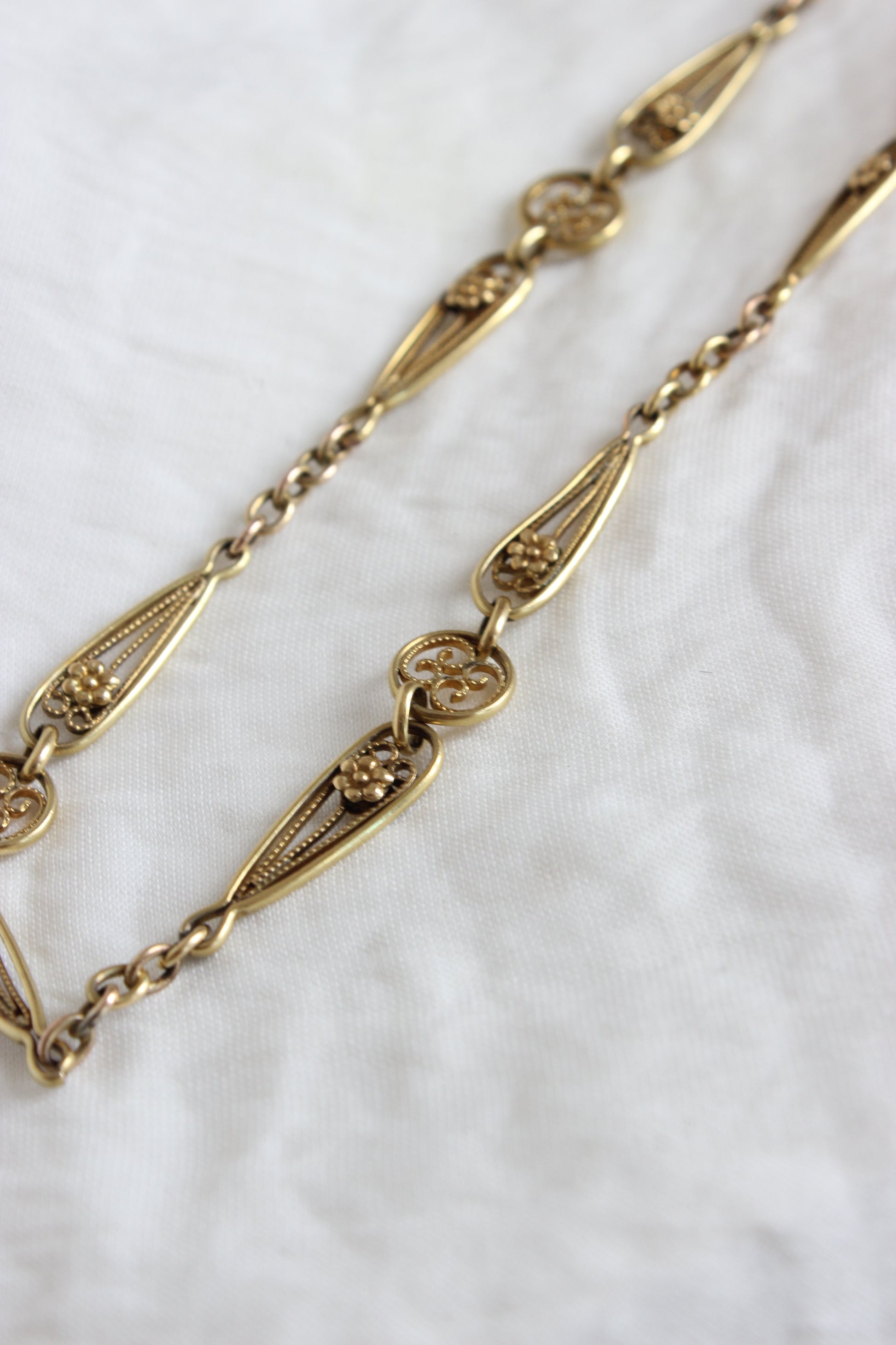 Pocket watch chains, or "goussets," were essential accessories in the 19th and early 20th centuries. They served a practical purpose, securing the watch to the wearer's clothing and preventing it from being dropped or lost. These chains were often crafted from precious metals and became a symbol of sophistication and status. Today, these vintage chains are cherished not only for their historical significance but also for their timeless style.