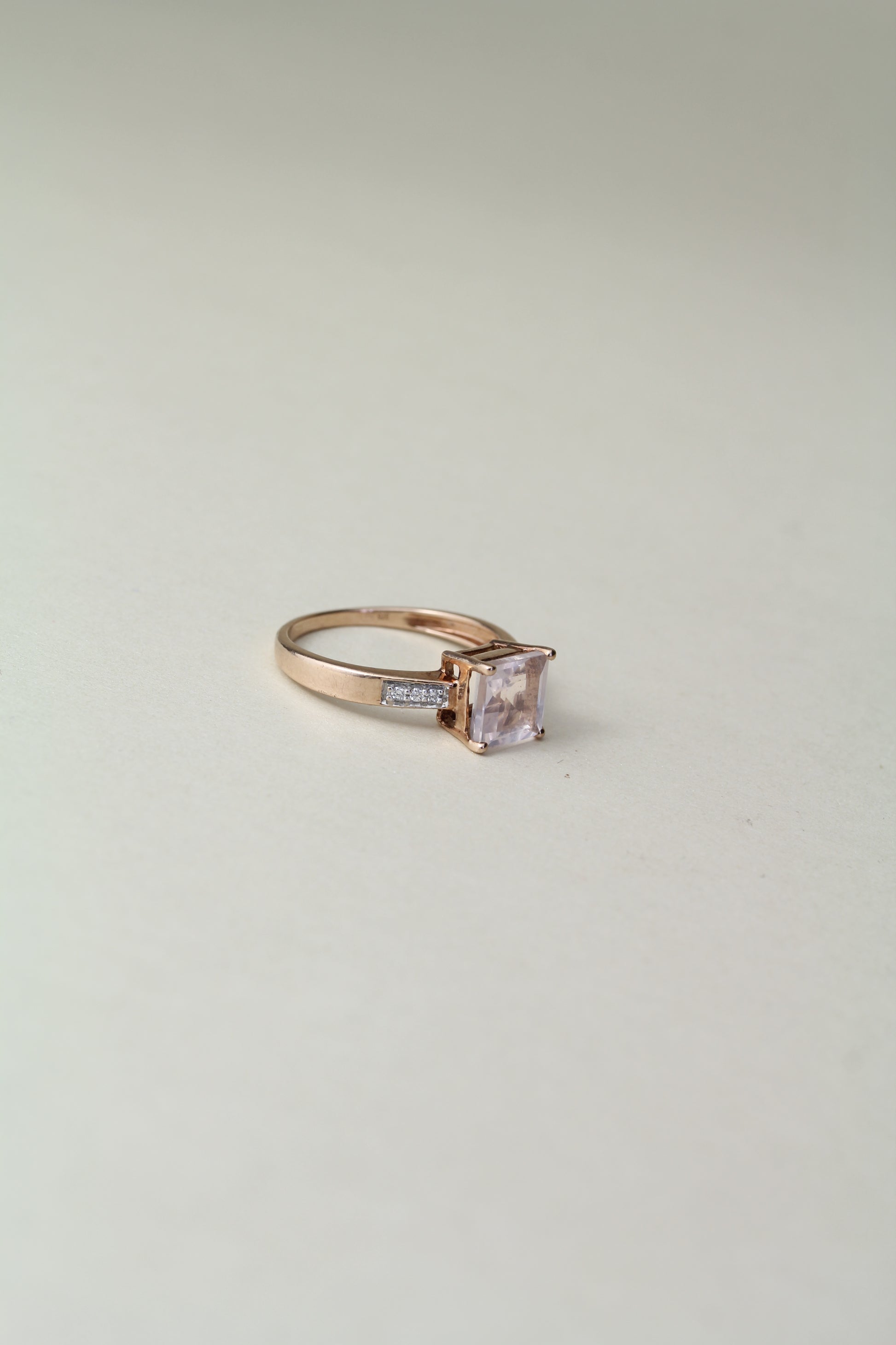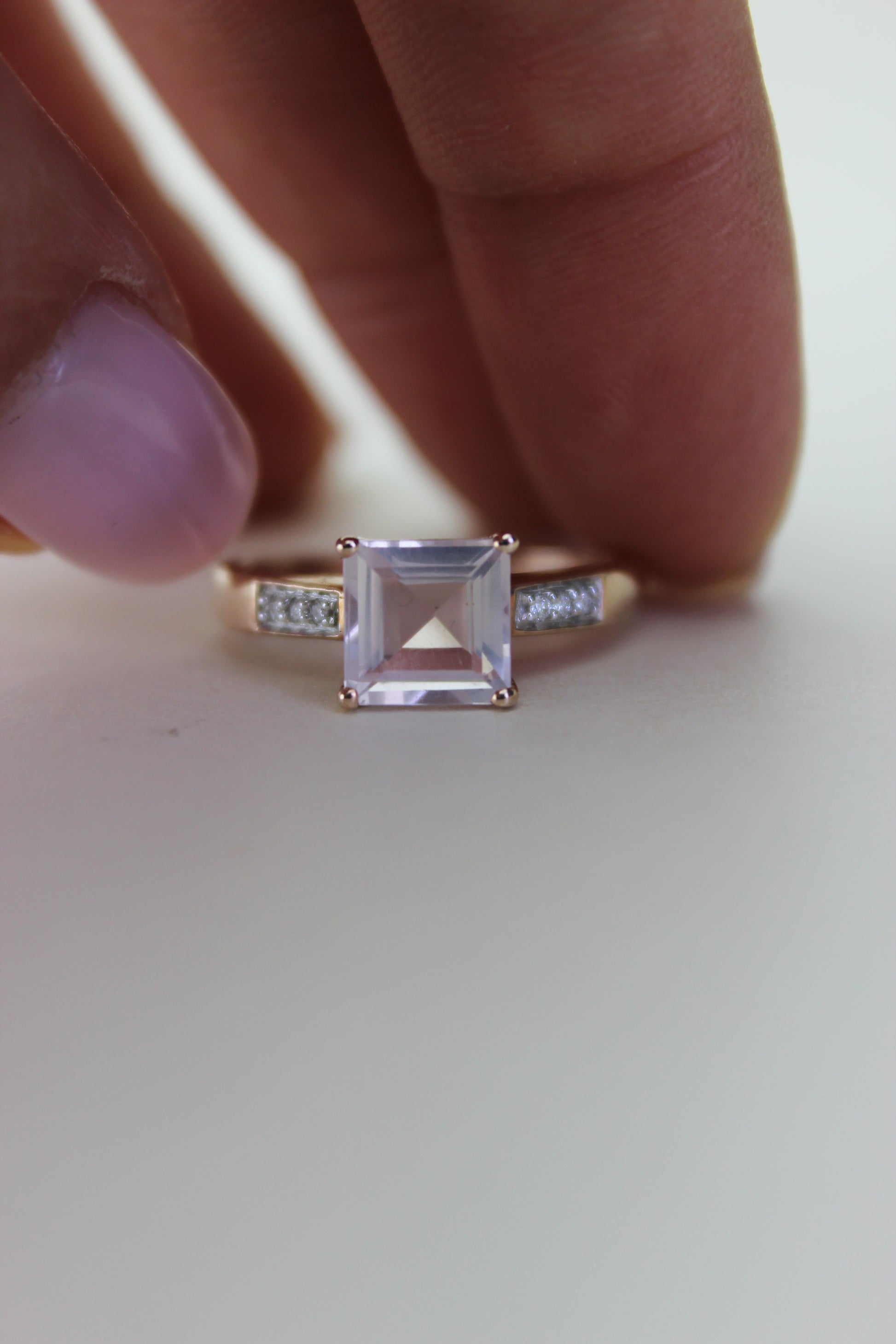 Gemstones: 1 square-cut pink-lilac quartz + 6 diamonds