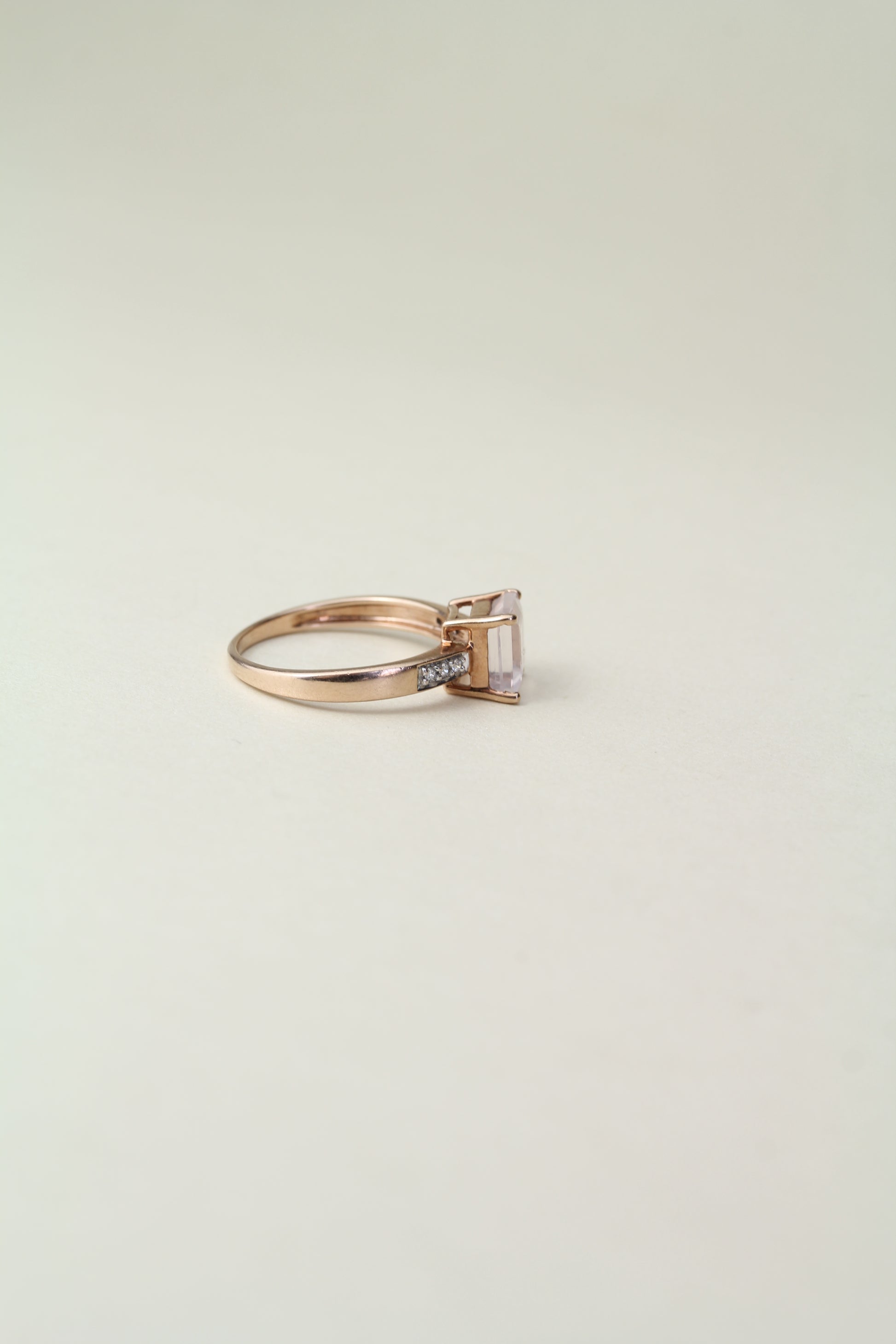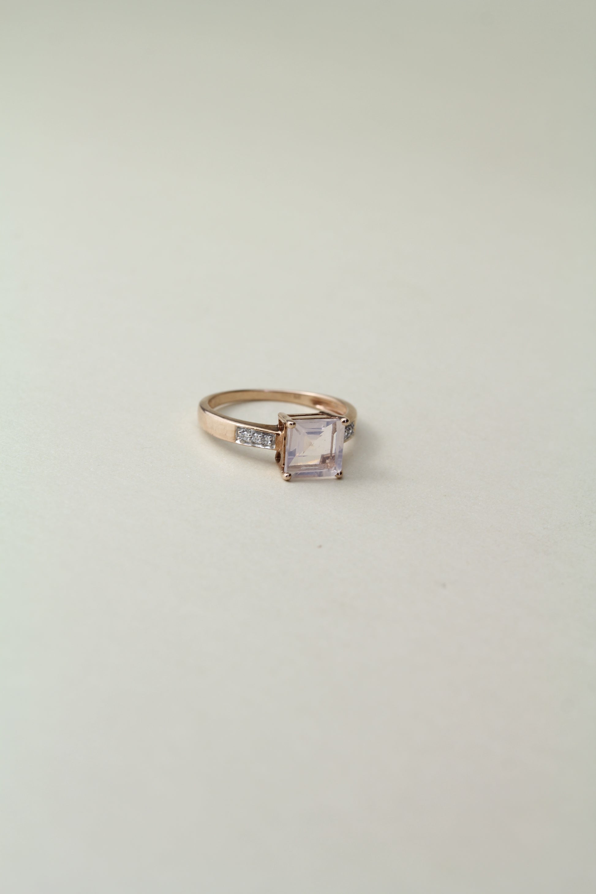 Vendôme Paris – 9K Rose Gold Cocktail Ring with Pink-Lilac Quartz & Diamonds
