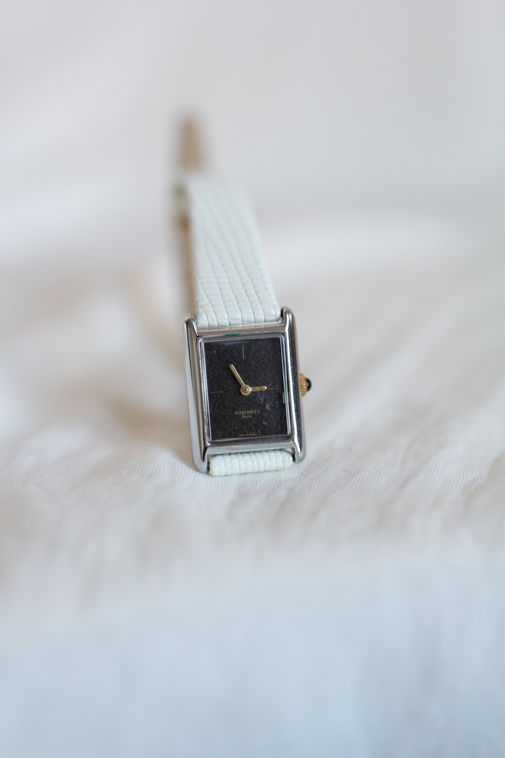 Introduced mainly between the 1970s and 1990s, Nina Ricci watches became sought-after for their harmonious blend of fashion-forward design and reliable Swiss or French movements. Often shaped with soft lines, luxurious finishes, and elegant palettes, these watches were created as refined accessories rather than simple timekeepers. Models like this tank version capture the spirit of the era: minimalist, chic, and unmistakably Parisian. A perfect piece for collectors of vintage fashion watches or lovers of timeless French style.