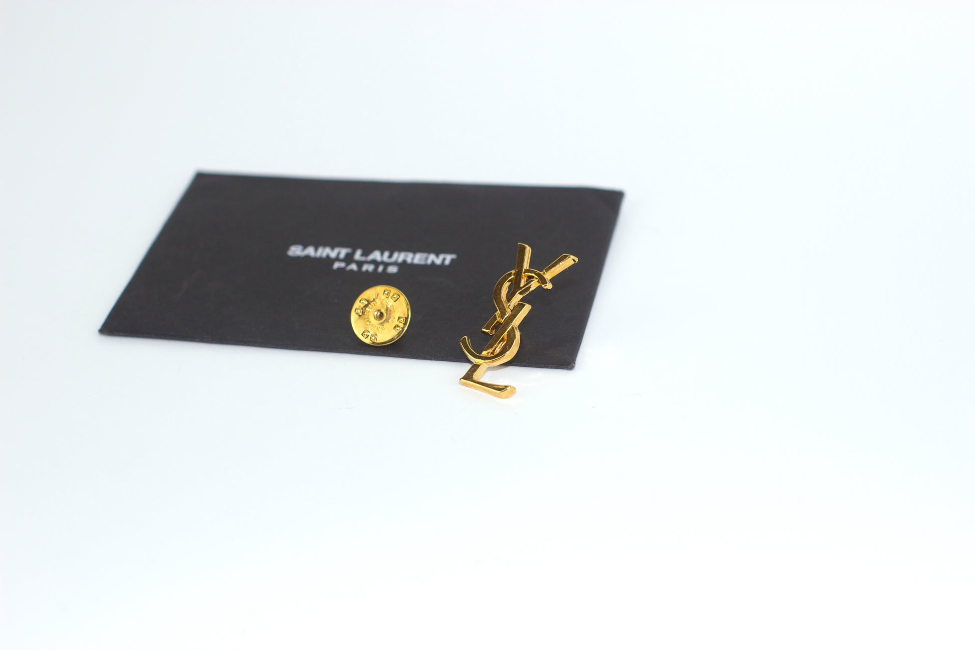 - Design: Discreet pin featuring the Yves Saint Laurent monogram.