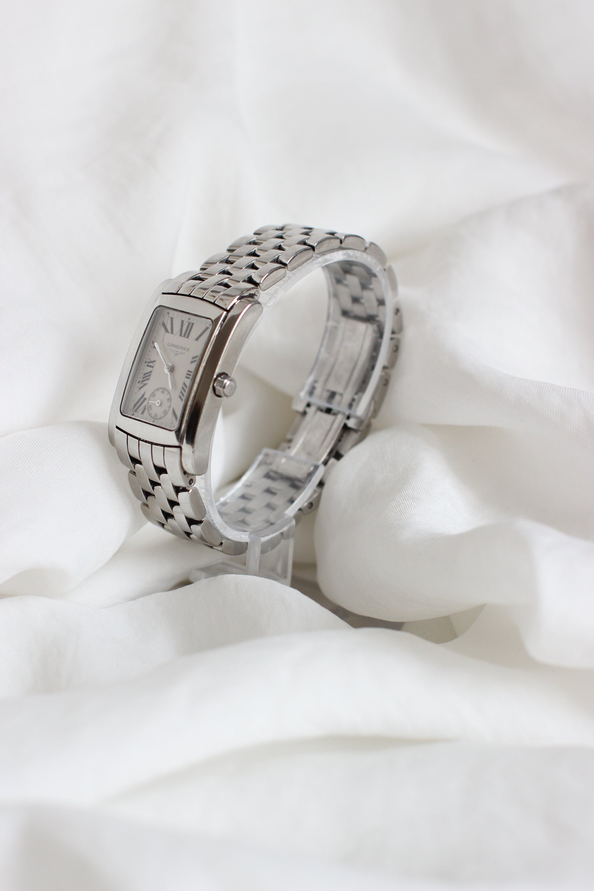 A stunning Longines Dolce Vita watch that perfectly embodies the sophistication and refinement of the Swiss Maison. With its harmonious rectangular shape and elegant proportions, this piece reflects the brand’s philosophy of blending classic aesthetics with modern precision. The watch is powered by a quartz movement with a newly replaced battery, ensuring flawless accuracy and reliability. Featuring its original jubilee-style stainless steel bracelet and original Longines box, this timepiece remains a testament to enduring luxury and design.