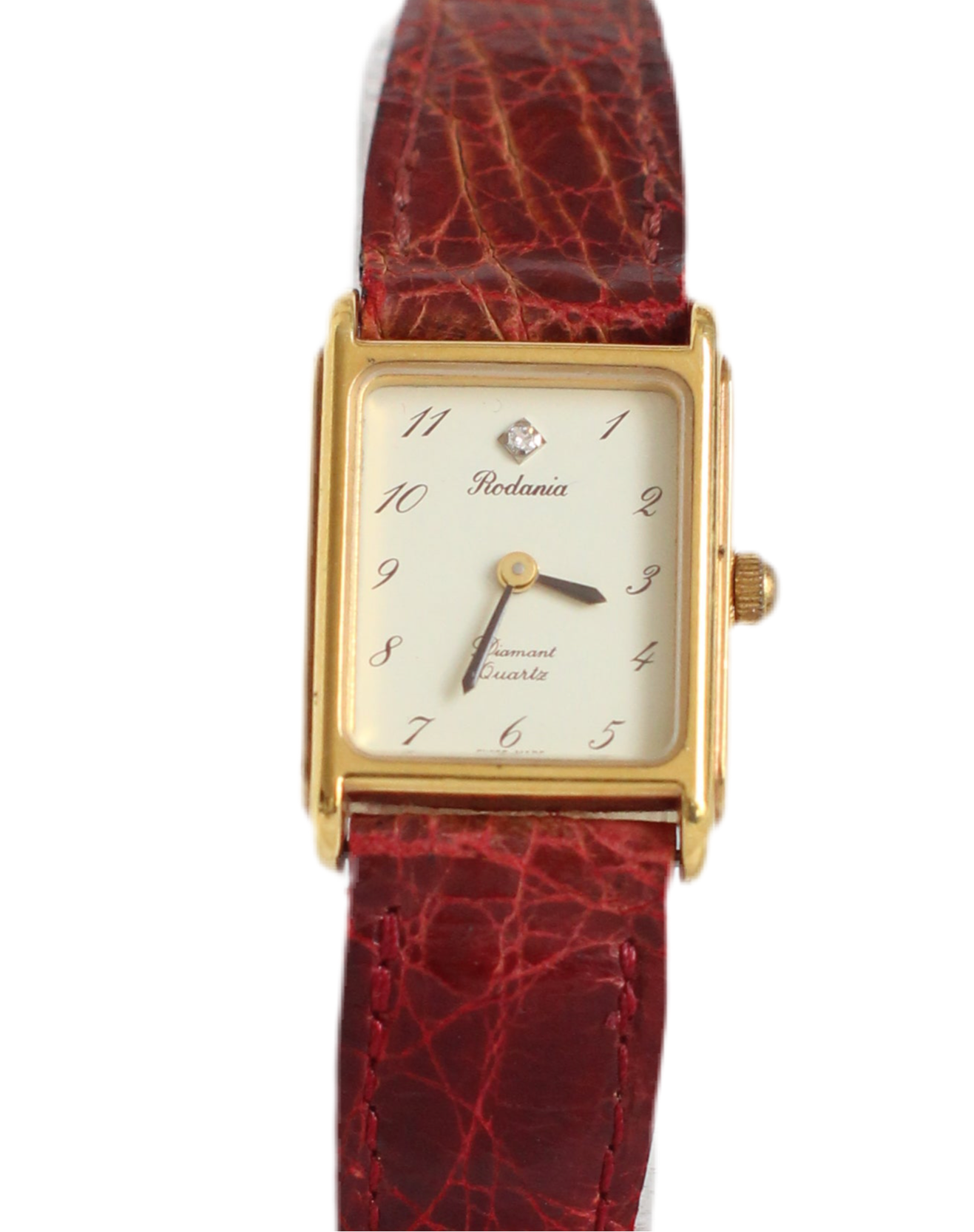 Founded in 1930 in Grenchen, Switzerland, Rodania is celebrated for creating elegant and reliable Swiss timepieces. During the 1980s, the brand embraced the tank shape, offering compact models with luxurious touches such as diamonds and high-quality leather straps. Rodania watches from this era are highly collectible, reflecting a perfect balance of Swiss craftsmanship, refined design, and timeless elegance.