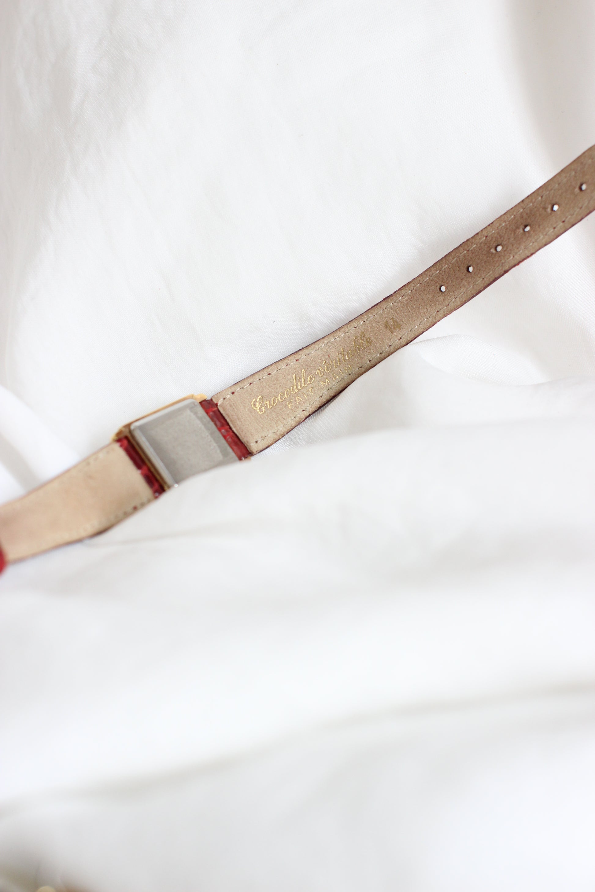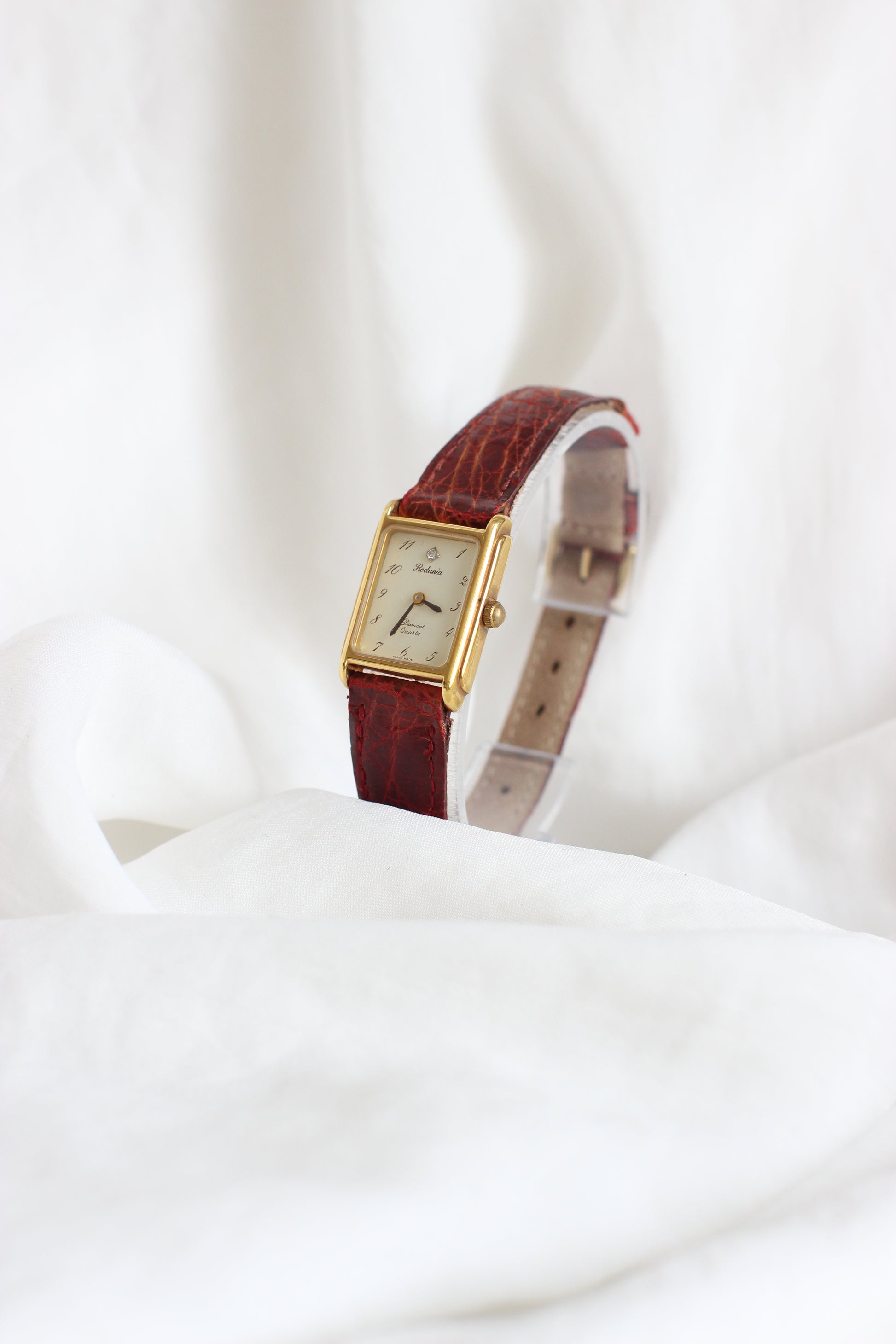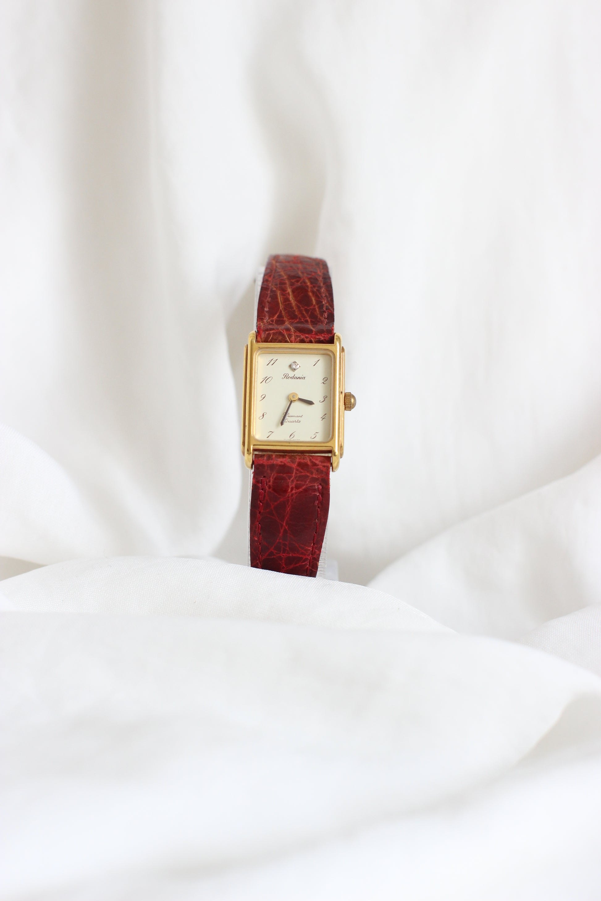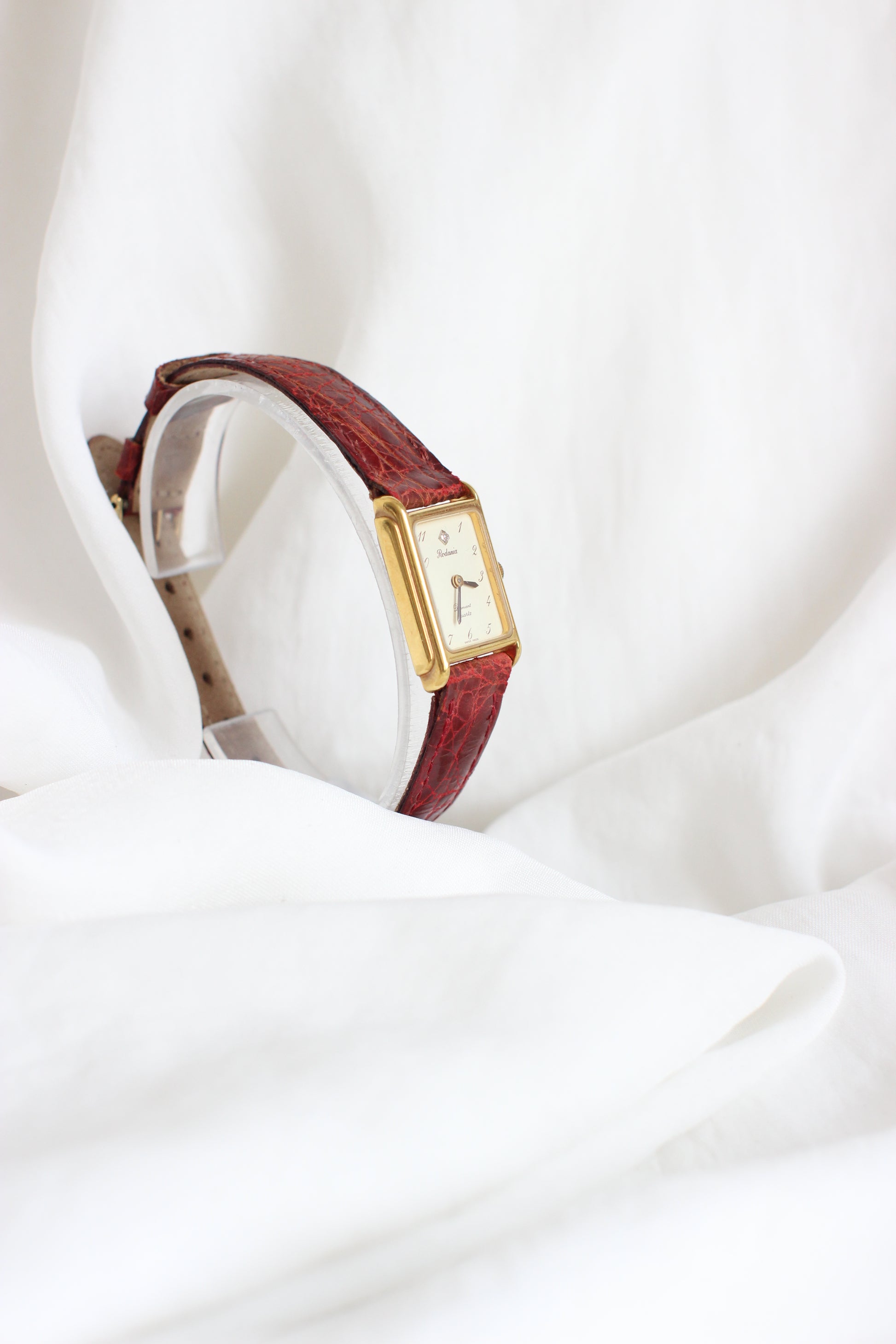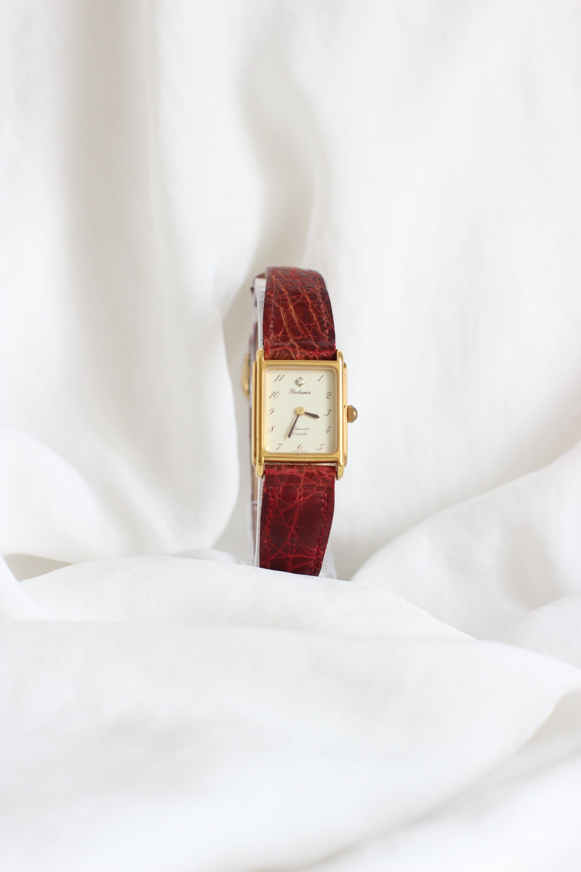 Rodania 1980s Mini Tank Watch – Diamond Detail & Bordeaux Crocodile Strap